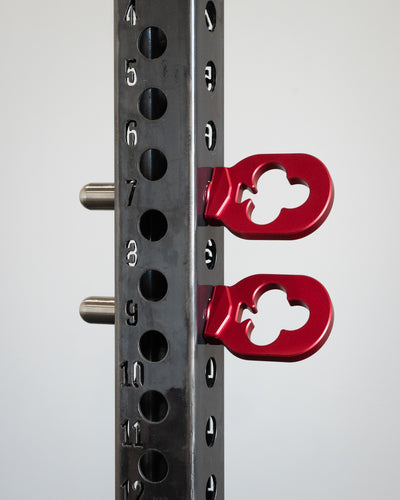 Milled solid aluminum head construction, fully concealed power and a stainless steel shaft; this is peak MagPin. Used throughout the gym to attach various accessories to power racks and squats stands. What we don't love; hairpin clips, detent balls, and pin handles that look like they're from a tractor supply store.